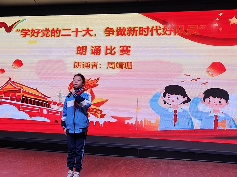 同学们满怀对党和祖国的挚爱深情,真情朗诵了《新时代的中国力量》《小萝卜头》《强国有我》等一首首慷慨激昂、振奋人心的经典诗歌作品,表达了广大青少年坚定跟党走的决心和信心。